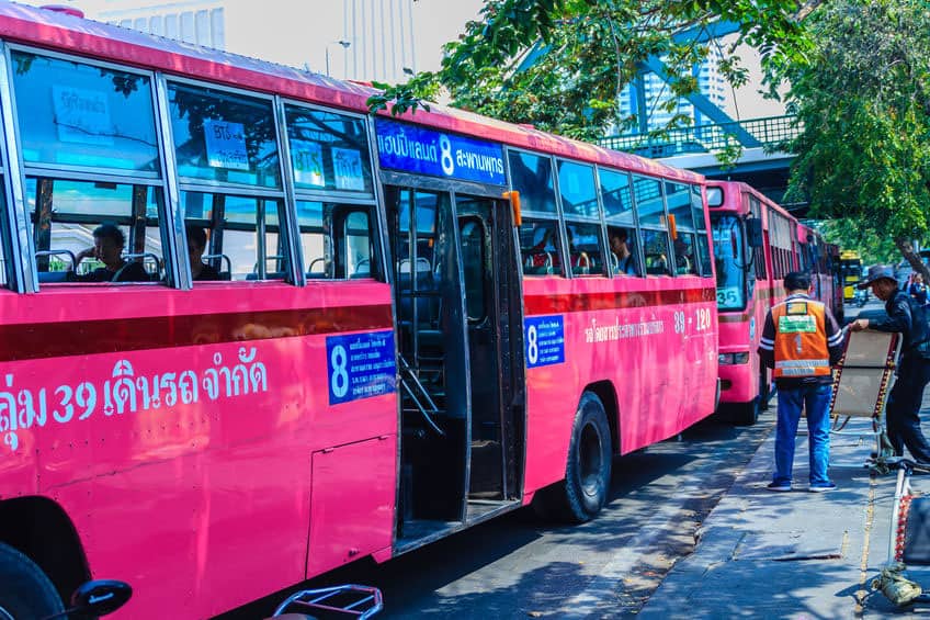 Where do buses leave from in Bangkok?